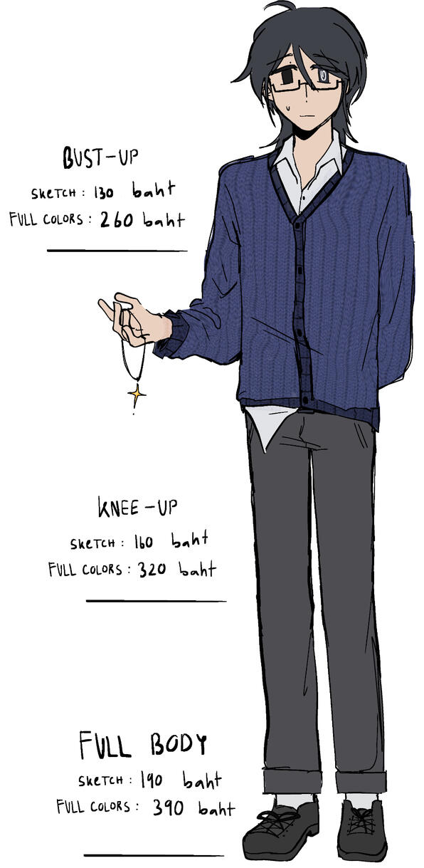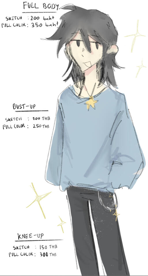 สามารถบรีฟ ท่าทาง, สีหน้าตัวละครได้ สำหรับงานที่มีพื้นหลังให้ระบุขนาดกระดาษและโทนของงานที่อยากได้